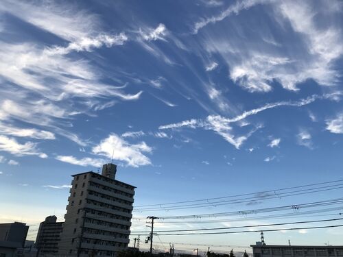夕方、仕事に出かけようとドアを開けたら、雲が飛んでいた。 飛行機のように。