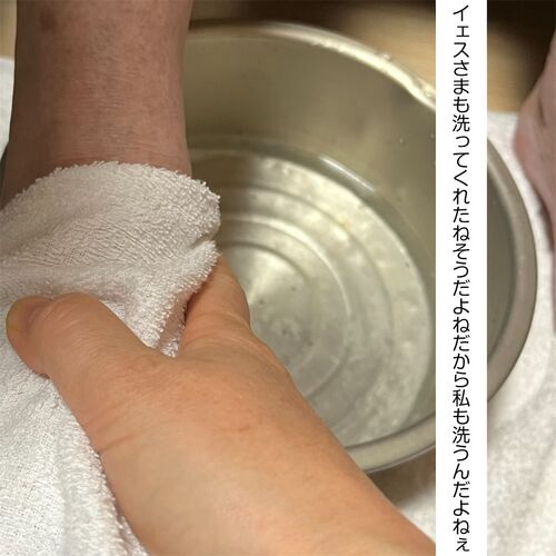 イェスさまも洗ってくれたねそうだよねだから私も洗うんだよねぇ------------- 最近、母の足を洗うことがある。在宅介護での半年、ショートステイでお風呂に入っているし、訪看さんに清拭もしてもらってるし、…と実はしてこなかった。ふと、昔ホームヘルパー…